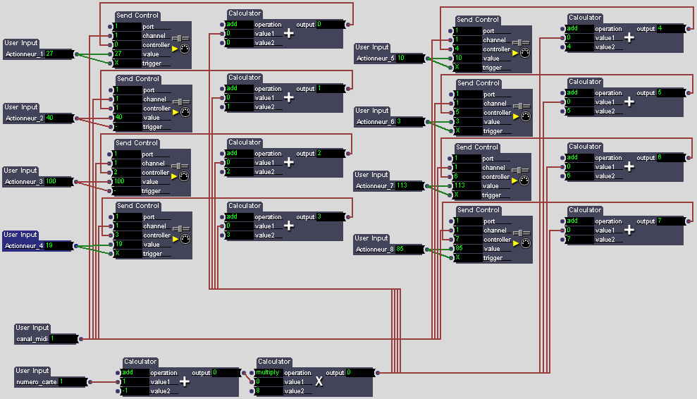 L'actor fondamental est le Send Control, qui permet d'envoyer des massages Midi Control Change.