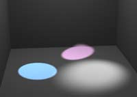 Imaginons des spots lumineux dans une pièce. Leurs impacts au sol peuvent être représentés simplement par des ronds posés sur un plan de la pièce.