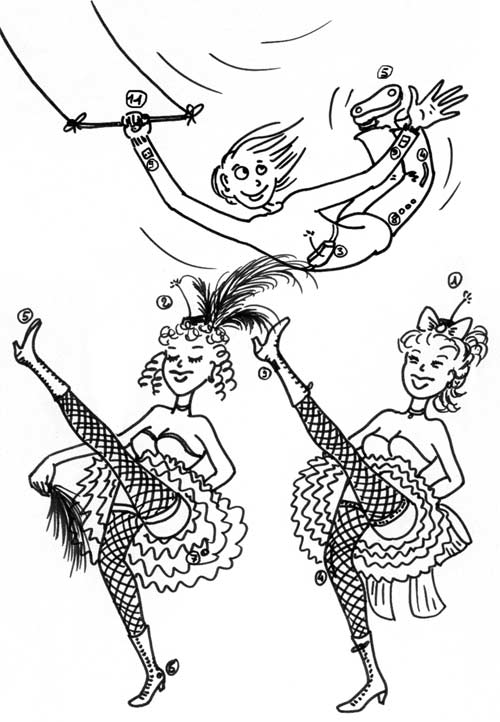 Trois modules Interface-capteurs-HF embarqués sur deux danseuses et un acrobate.