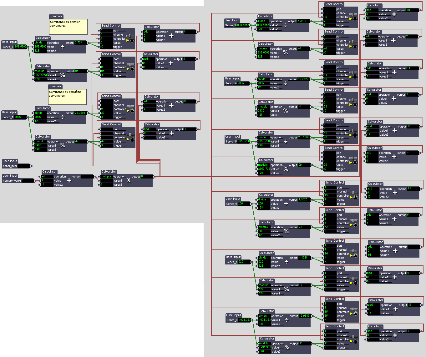 Patch Isadora pilotage de 8 servos en 3500 pas.